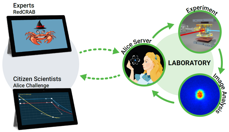 In the ‘Alice Challenge’, Robert Heck and colleagues gave both experts and citizen scientists live access to their ultra-cold quantum gas experiment. This was made possible by using a novel remote interface created by the team at ScienceAtHome, Aarhus University. By manipulating laser beams and magnetic fields, the task was to cool as many atoms as possible down to extremely cold temperatures just above absolute zero at -273.15°C. This so-called Bose-Einstein condensate (BEC) is a distinct state of matter (like solid, liquid, gas or plasma) that constitutes an ideal candidate for performing e.g. quantum simulation experiments and high precision measurements.