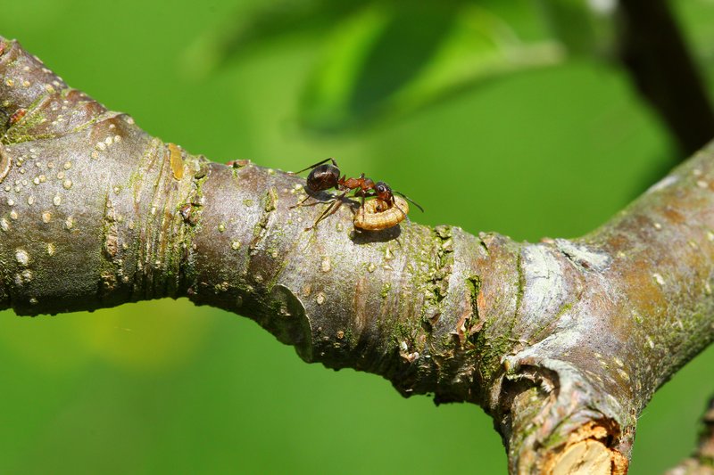 Du har tit set myrer kravle rundt på bladene – selv i høje træer. Det er faktisk planterne selv, der lokker dem derop. De udskiller nemlig lidt sukkerholdig nektar, som myrerne spiser med stor glæde. Og på deres færden rundt på stammer og blade snupper myrerne så insekter, der ellers kan skade planterne.